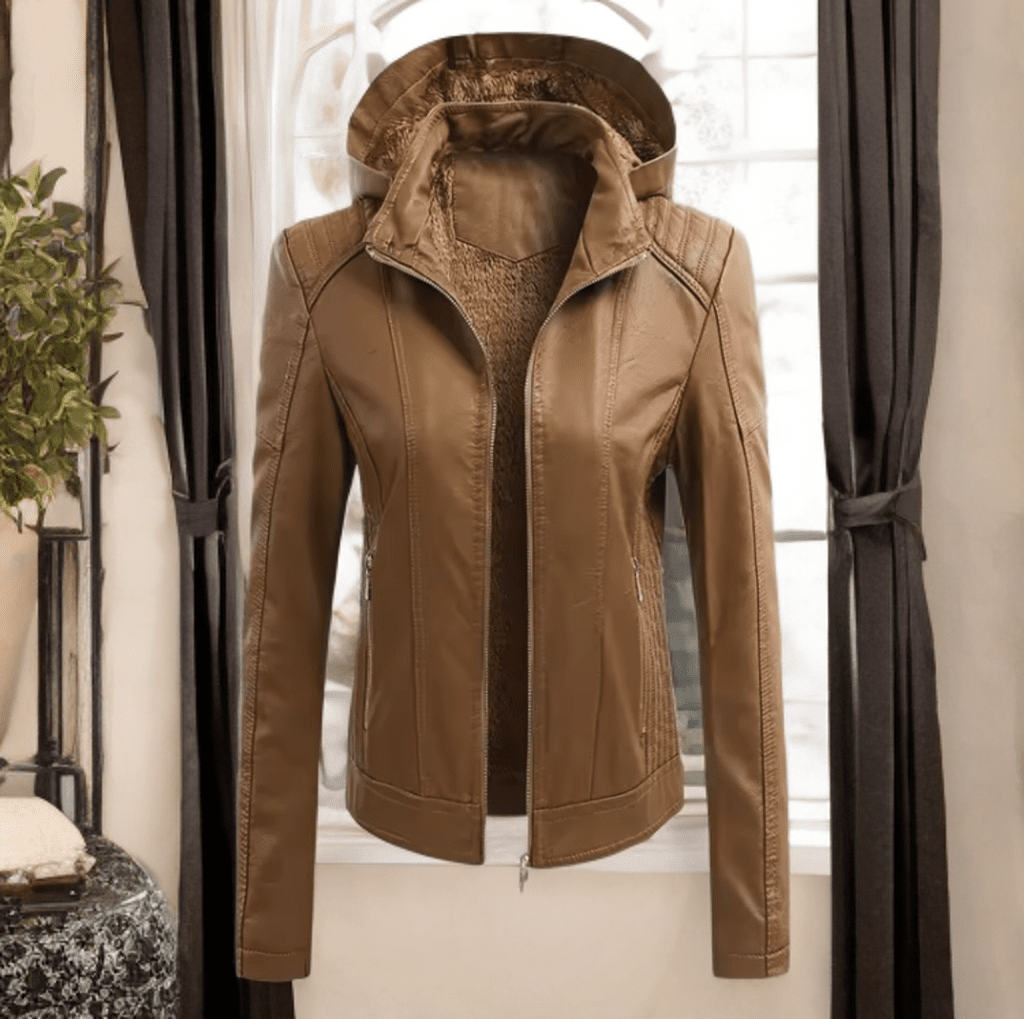 Kurtka skórzana damska z kapturem ze skóry eko brązowa, MAJA wykonana z wysoko gatunkowej ekologicznej skóry, która dzięki swoim wysokim właściwością skóra nie wydziela nie przyjemnych fabrycznych zapachów jest lekka i delikatna w dotyku, co daje komfort przy użytkowaniu wczesną wiosną, jesienią czy w okresie przejściowym, kurtka podszyta ocieplaną podszewką, zapinana na zamek na wysokiej stójce, która pełni funkcje nie tylko ozdobne, ale i termiczne chroniąc Twoje ciało przed wiatrem w chłodne dni, dodatkowo model posiada kaptur. który możesz odpinać w zależności od pogody czy Twoich stylizacji Kurtka skórzana MAJA pasuje niemal na każdą sylwetkę, znajduję połączenia w stylizacjach eleganckich narzucona na sukienkę w stylizacjach casual połączona z białą koszulą jak i nieco luźniejszym zestawieniu np. dresami.
