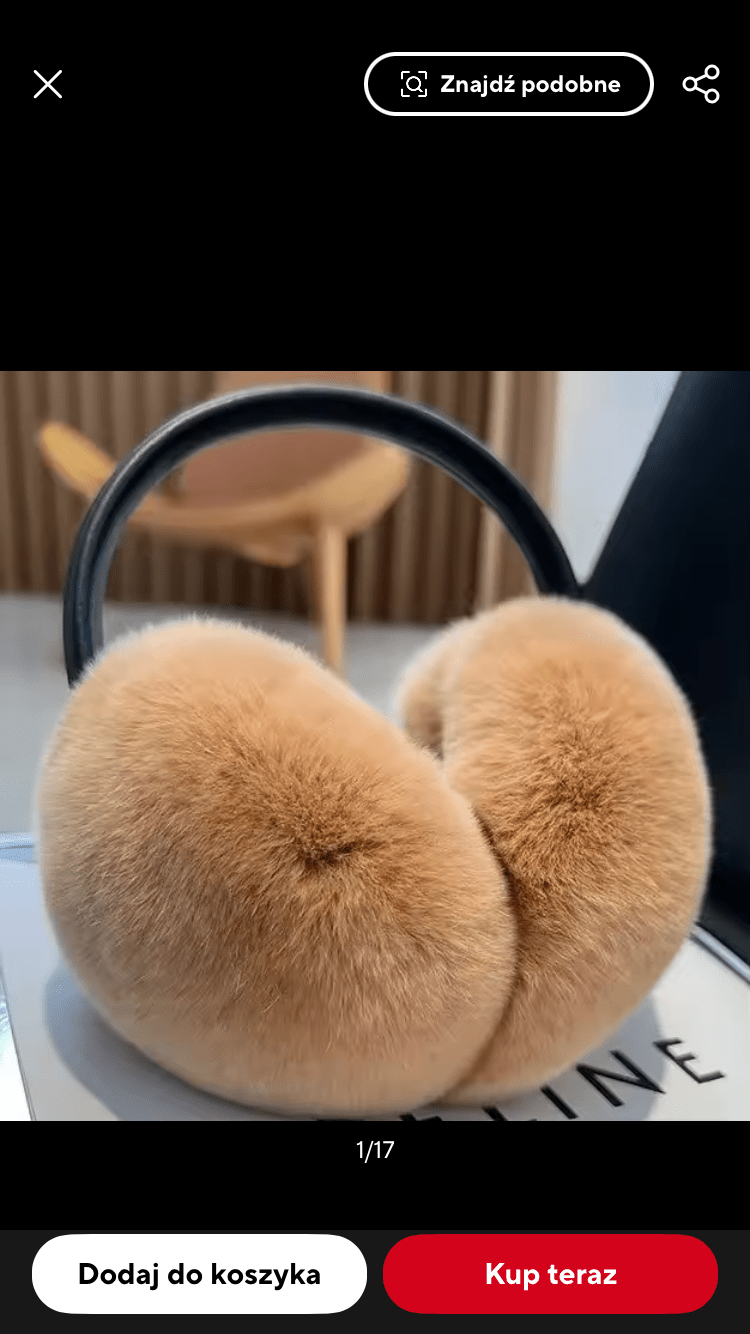 Nauszniki futrzane z futra królika szynszylo-rexa cappuccino