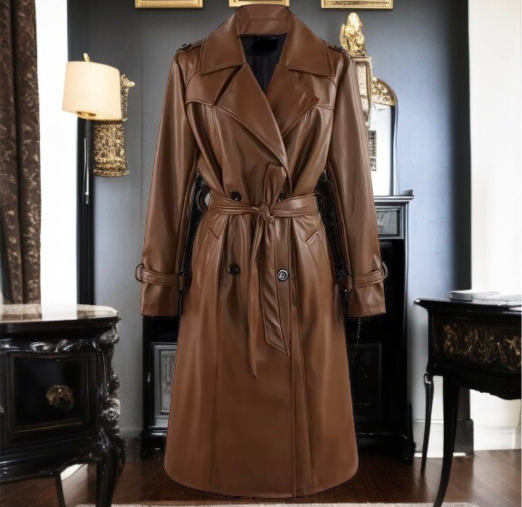 Płaszcz skórzany brązowy z naturalnej skóry damski dwurzędowy,LAYLA